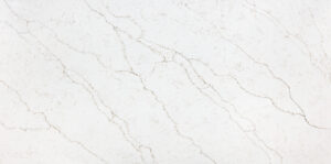 Marble-inspired quartz, featuring a white background with diffused grey veining